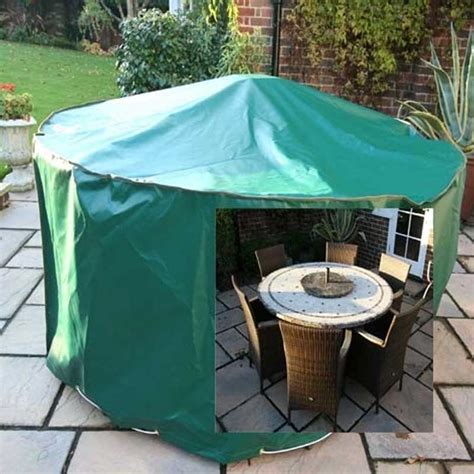 Another great feature of round patio set covers is their versatility. They come in a variety of sizes and styles, so you can find the perfect fit for your furniture. Some covers even have adjustable straps and elastic hems, allowing for a snug and secure fit. This ensures that your cover won't blow away in strong winds or become loose and saggy over time.